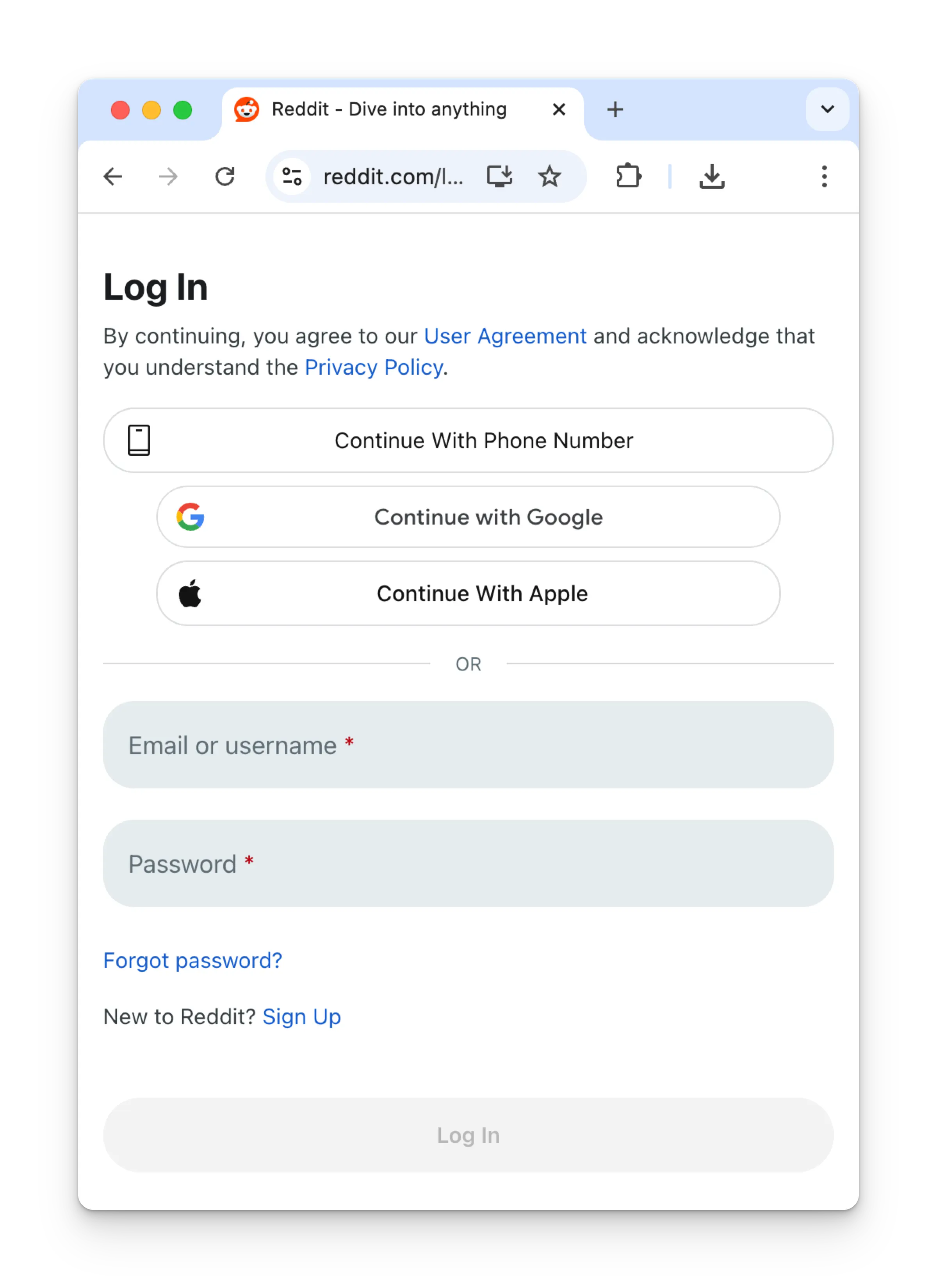 FIrst Time Reddit LoginIf you are not logged in yet, enter your credentials to login to Reddit and click Log In.