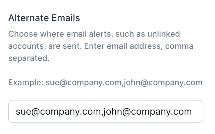 Choose different email addresses to deliver alerts, such as unlinked accounts.