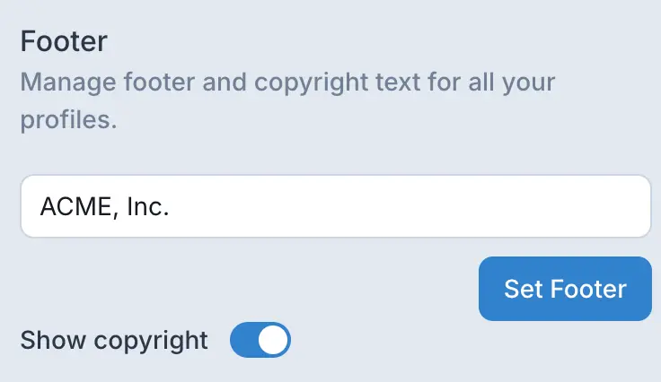 Customize the footer text and add copyright information on the social linking page. This allows you to display the footer text in different languages.
