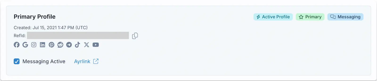 See the create a profile endpoint for more information on disabling social networks at the User Profile level.