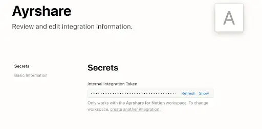 If successful, an internal integration token will be available to you. Note this for future steps in this page.
